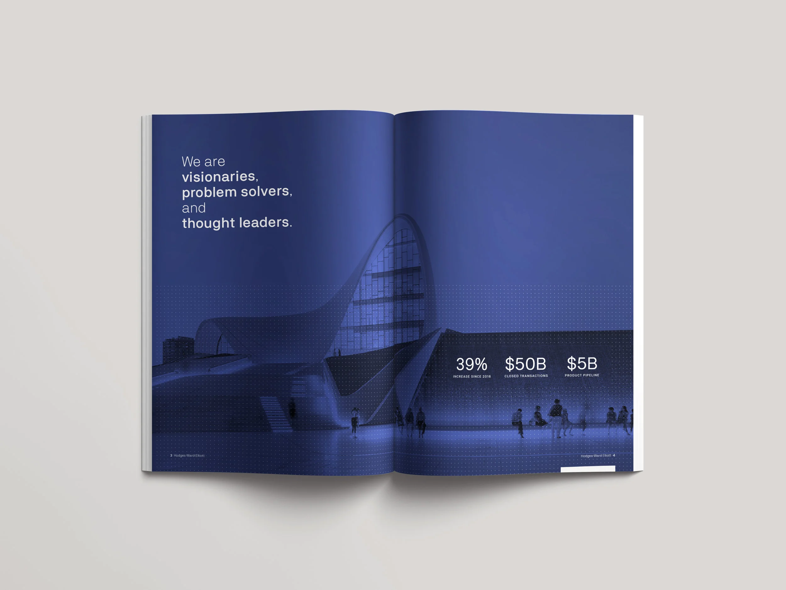 Corporate rebrand for Hodges Ward Elliott, the world's leading independent hotel brokerage and investment-banking firm.